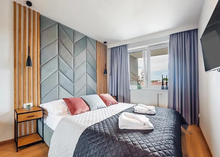 Boendet med 1 sovrum erbjuder ett utrustat kök, utrustat med ugn och diskmaskin. Flygplatsen Solidarity Szczecin-Goleniow är belägen 95 km från boendet. Den här lägenheten erbjuder gästerna tillgång till en pool.